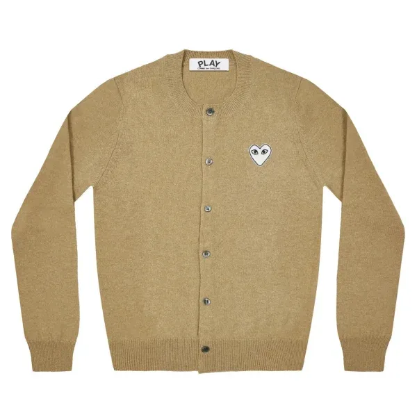 CDG Play Men Cardigan White Heart Natural Series Camel