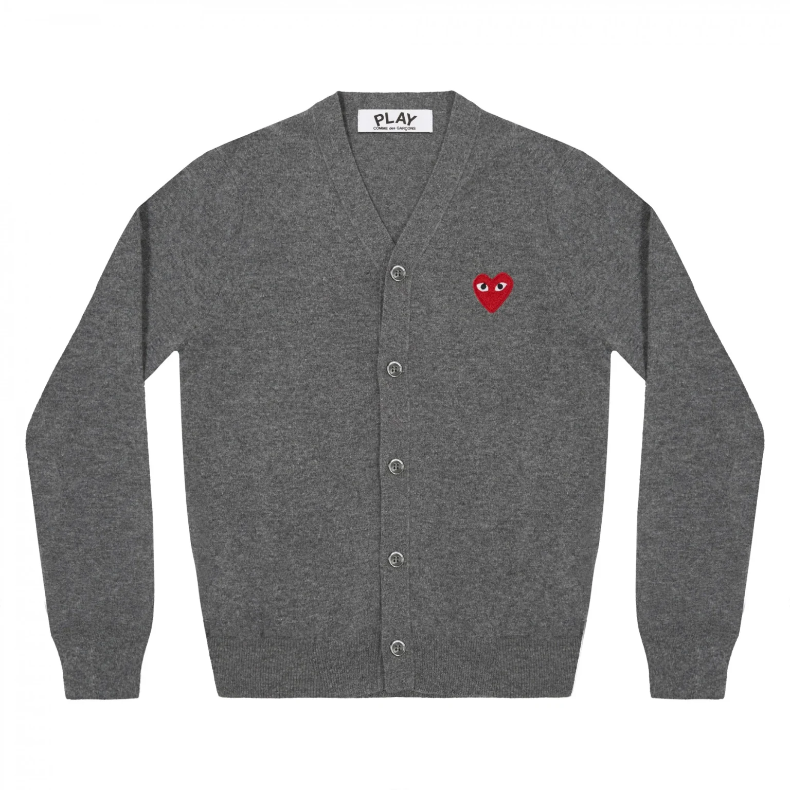 CDG Play Men Cardigan With Small Red Heart (Grey)