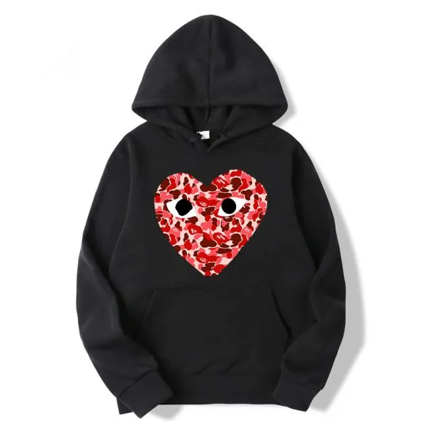 Comme Des Garcons Play Hoodies are also very famous in fans, While you check their Play Heart logo with 2 cartoon eyes. The Comme Des Garcons iconic logo of heart with eye print on Front side at pocket and also in back side with a big heart logo, thats look awesome. CDG Hoodie also available with top-notch brand collabs like Nike, Converse ASSC and Stussy.